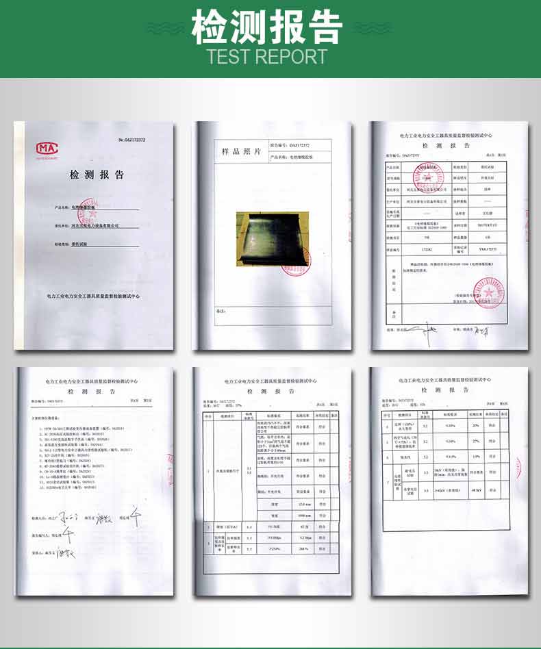 絕緣橡膠板又名橡膠高壓絕緣墊,防靜電膠,板外觀及規格尺寸: 斑痕或凹凸部分的深度或高度不得超過膠板厚度公差,氣泡每平方米內,面積不于1cm2的氣泡不超過5個,任意兩個氣泡間距離不小于40mm,其中雜質深度及長度不超過膠板厚度不小于40mm,膠墊 邊緣不齊或海綿狀部分寬度不超10mm,長度不超過膠板總長的1/10,并且不允許有裂痕。