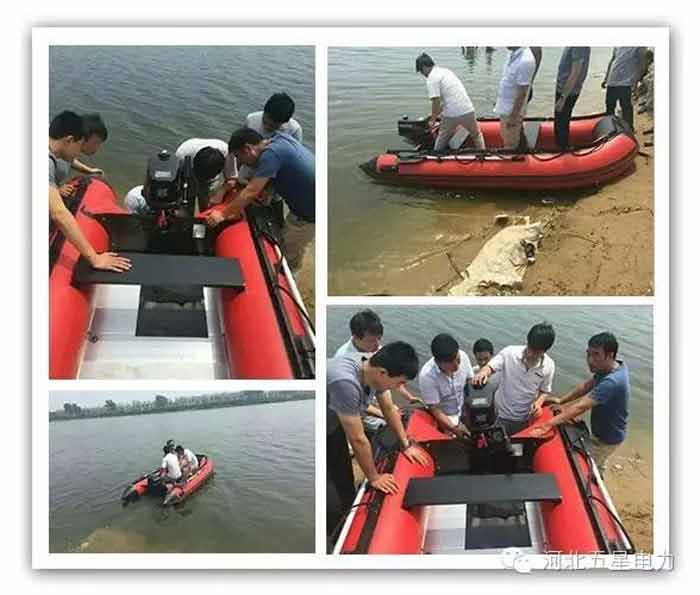 河北省一家水庫管理局從河北五星電力設備有限公司緊急采購15艘防汛搶險橡皮舟,河北五星“應急響應技術服務隊”三名隊員在客戶收到貨后,長途奔波數(shù)百公里,為客戶現(xiàn)場調試設備,免費提供操作技術培訓,受到客戶贊譽!